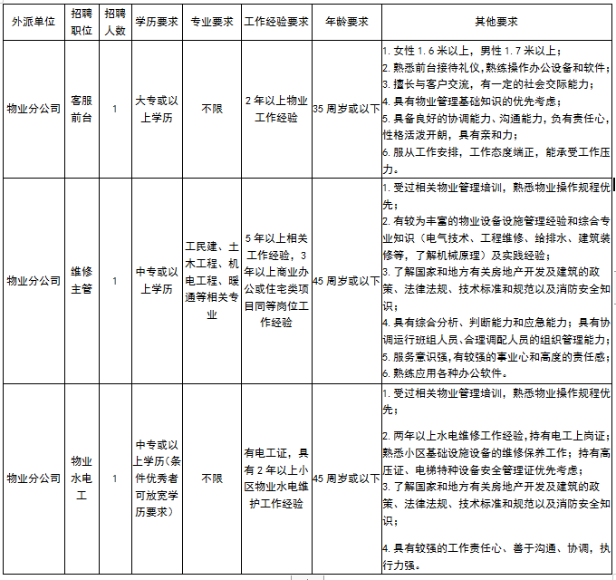 清遠(yuǎn)市弘力勞務(wù)有限公司以“專注人才服務(wù),專業(yè)服務(wù)人才”為企業(yè)宗旨,力求為企業(yè)及求職者提供專業(yè)、高效的人才服務(wù)平臺(tái),F(xiàn)因公司業(yè)務(wù)發(fā)展需要,按照公開、平等、競(jìng)爭(zhēng)、擇優(yōu)的原則誠(chéng)聘客服前臺(tái)、維修主管和物業(yè)水電工各一名外派到清遠(yuǎn)市德晟公共資源管理有限公司物業(yè)管理服務(wù)分公司。
