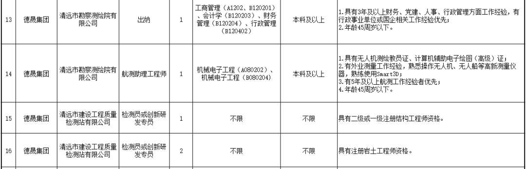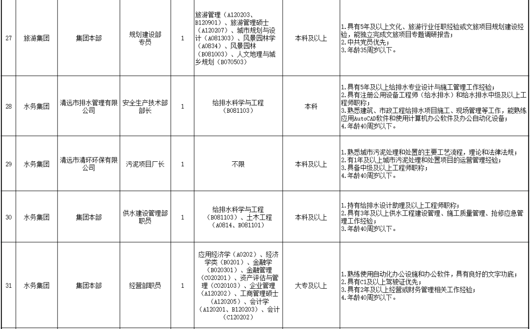 為進(jìn)一步加強(qiáng)清遠(yuǎn)市屬國(guó)有企業(yè)人才隊(duì)伍建設(shè),根據(jù)企業(yè)經(jīng)營(yíng)發(fā)展需要,按照“公開、平等、競(jìng)爭(zhēng)、擇優(yōu)”的原則,公開招聘市屬國(guó)有企業(yè)員工38人,誠(chéng)意邀請(qǐng)符合條件的人員報(bào)名應(yīng)聘,F(xiàn)將有關(guān)事項(xiàng)公告如下: