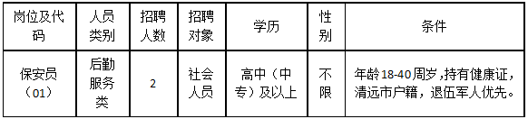 清遠(yuǎn)市清城區(qū)機(jī)關(guān)事務(wù)管理局因工作需要,根據(jù)《關(guān)于印發(fā)<清遠(yuǎn)市清城區(qū)機(jī)關(guān)事業(yè)單位專項(xiàng)工作聘員、合同制聘員以及后勤服務(wù)類人員管理辦法>的通知》(城區(qū)人社〔2022〕20號(hào))文件精神,面向社會(huì)公開招聘后勤服務(wù)類人員2名,現(xiàn)將有關(guān)事宜公告如下: