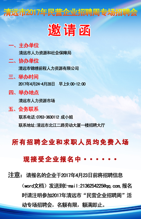 清遠(yuǎn)市2017年“民營企業(yè)招聘周”活動(dòng)專場招聘會